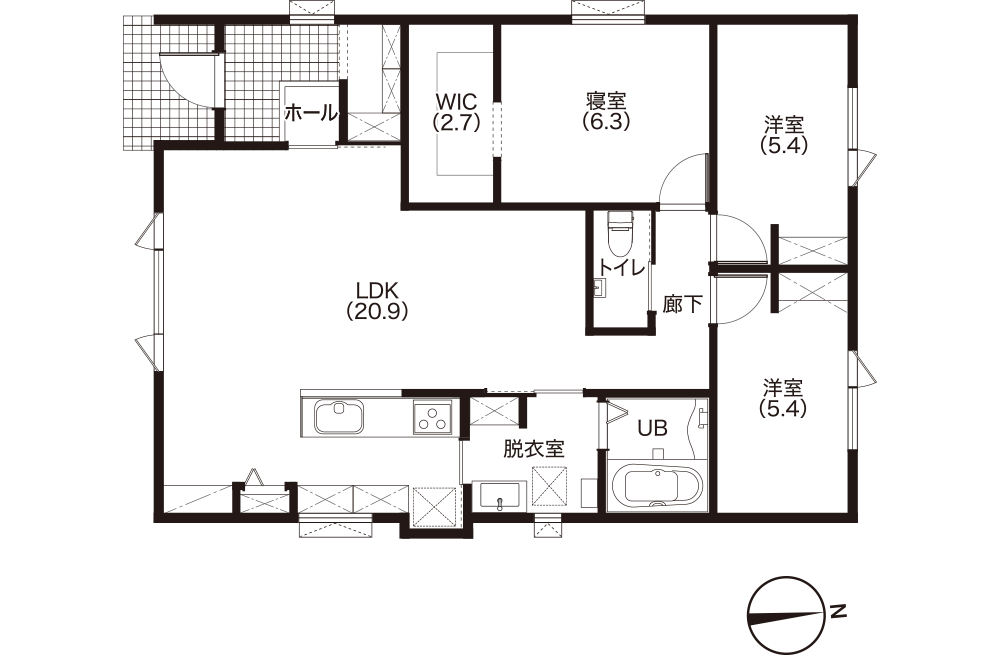 1メータモジュールを採用しているので、廊下やトイレもゆったり。